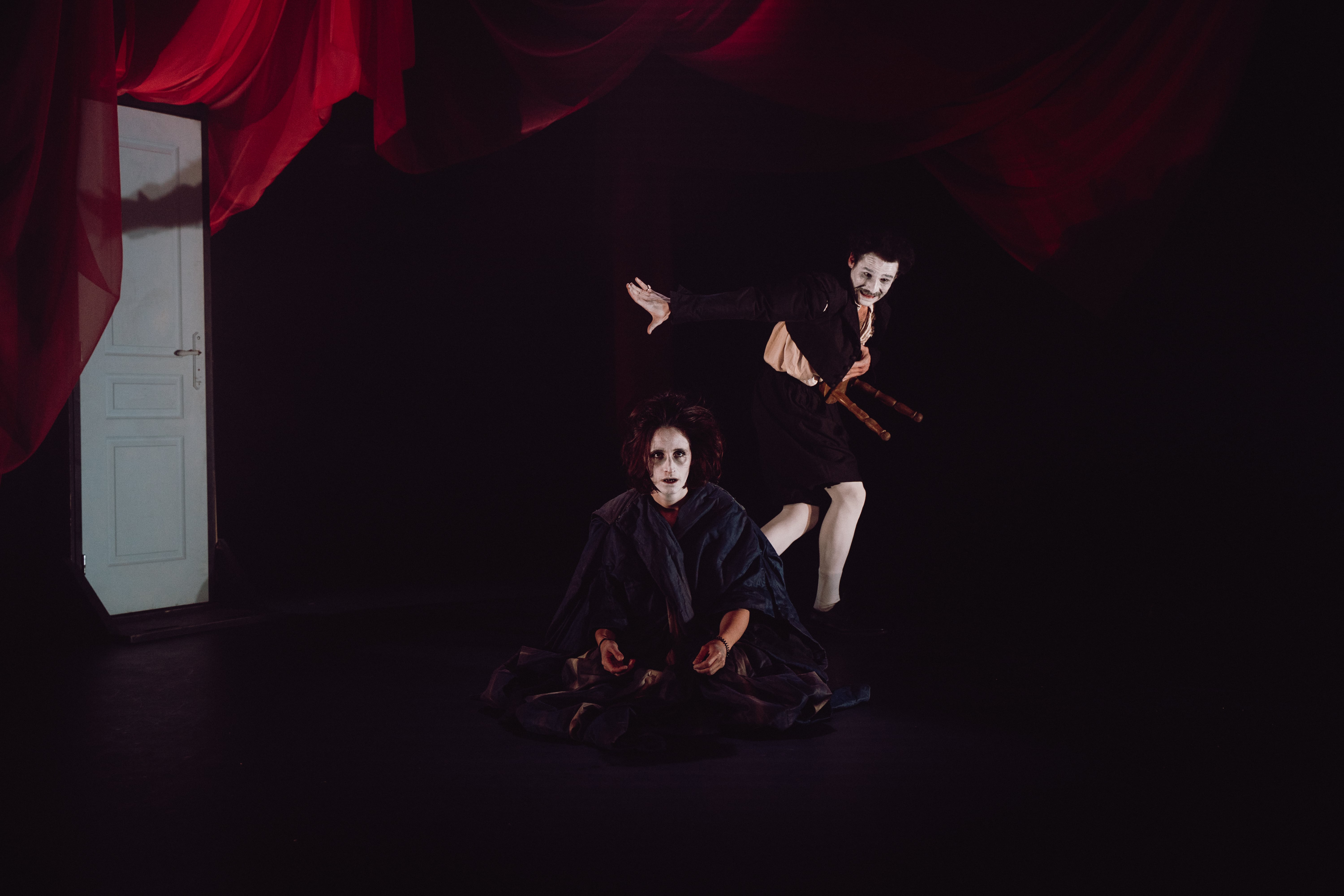 Requiem Room met en scène des personnages condamné·es à déambuler dans une étrange quête initiatique. Comme dans un cauchemar, iels sont prisonnier·es et se débattent dans des espaces qui se dérobent. Ici, violence et domination semblent avoir pris le pouvoir : Ding dong ! On ouvre, un mystérieux invité renverse tout. Le monde explose, puis dans la poussière d’un théâtre vide, une créature masquée assoit sa terreur. Les personnages, en perpétuel quête de sens, tenteront sans cesse de s’échapper, trouver une issue, quitter ces boucles infernales.