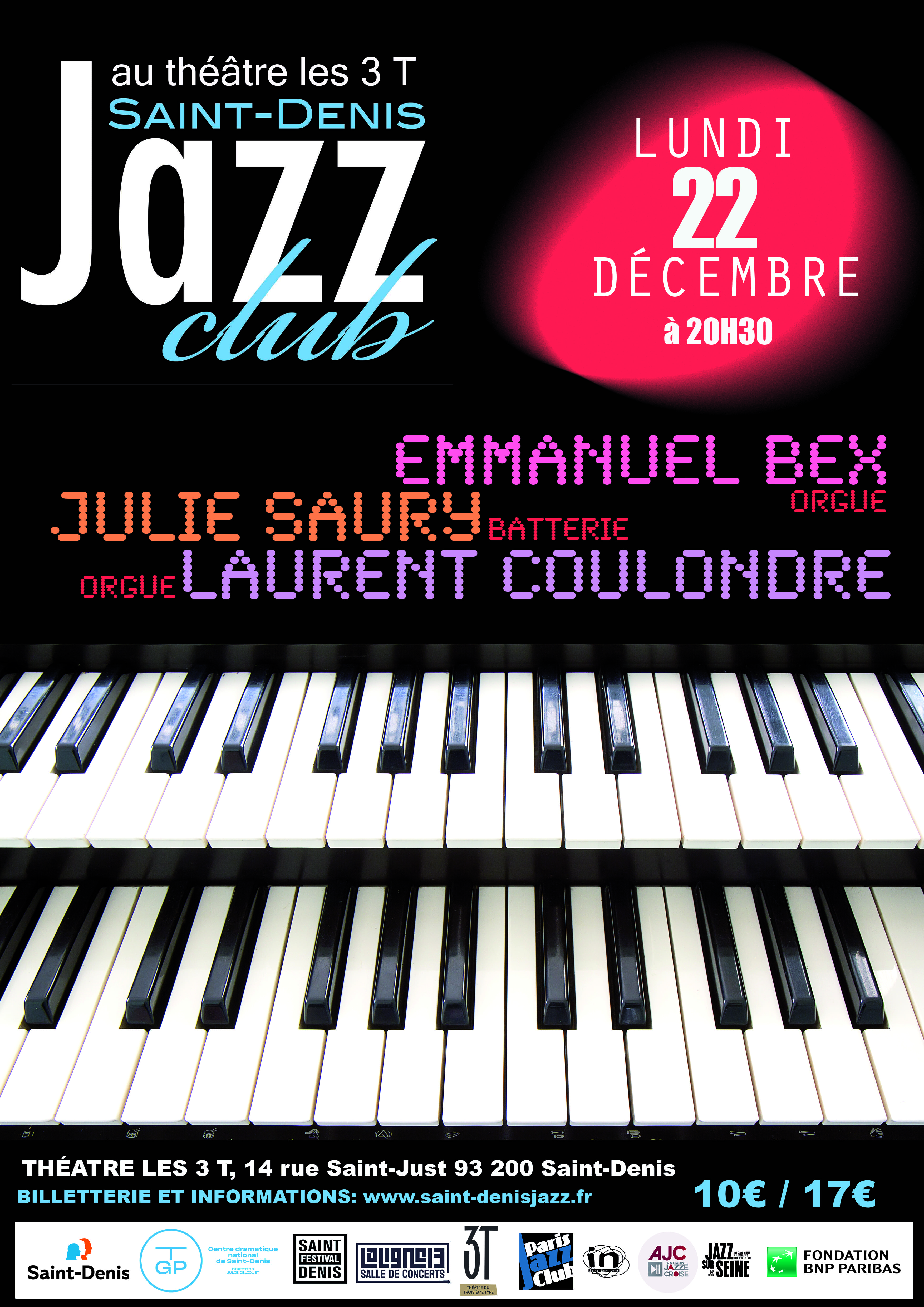 Laurent Coulondre n’aime rien tant qu’établir avec le public une communication franche et directe, à travers un jazz groovy. Virtuose certifié de l'orgue Hammond, compositeur et arrangeur inventif, Emmanuel Bex n’aime rien tant qu’ explorer de nombreux univers musicaux. Pour les accompagner à la batterie, ils ne pouvaient trouver mieux que Julie Saury, fidèle de Rhoda Scott dans son « Ladies Quartet ».