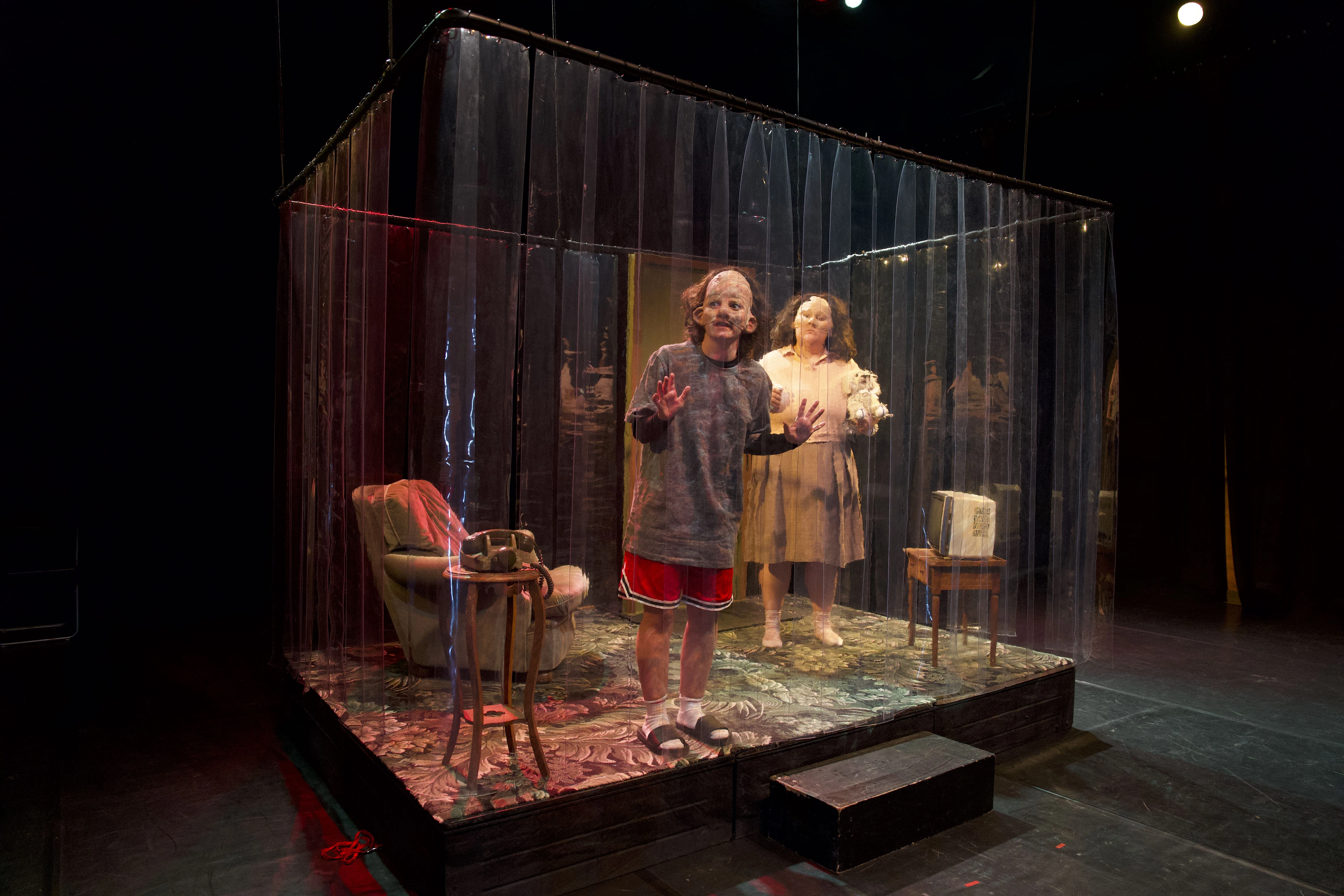 Il s’agit donc d’une femme, Marie, patiente cobaye, tout comme il s’agit d’une truie. Marie voit son destin lié à cet animal qui en lui-même cristallise les paradoxes de notre rapport au vivant : consommation excessive et distanciée mêlée de mépris. Qu’elle soit de femme ou de truie, c’est de chair dont il est question ici. Une chair constamment soumise aux regards des autres : celui des proches, de la médecine, ou encore celui des médias. La mise en scène est guidée par une esthétique de la distorsion, qui crée un effet glaçant en même temps qu’elle déplace le jeu dans des codes burlesques en engageant pleinement le corps au plateau. La musique rend à cette histoire de xéno-tranplantation son aspect quasi-fantastique, entre opéra électronique et comédie musicale macabre. Par l’effroi et le rire, ce cauchemar merveilleux interroge notre humanité et notre appartenance au vivant.