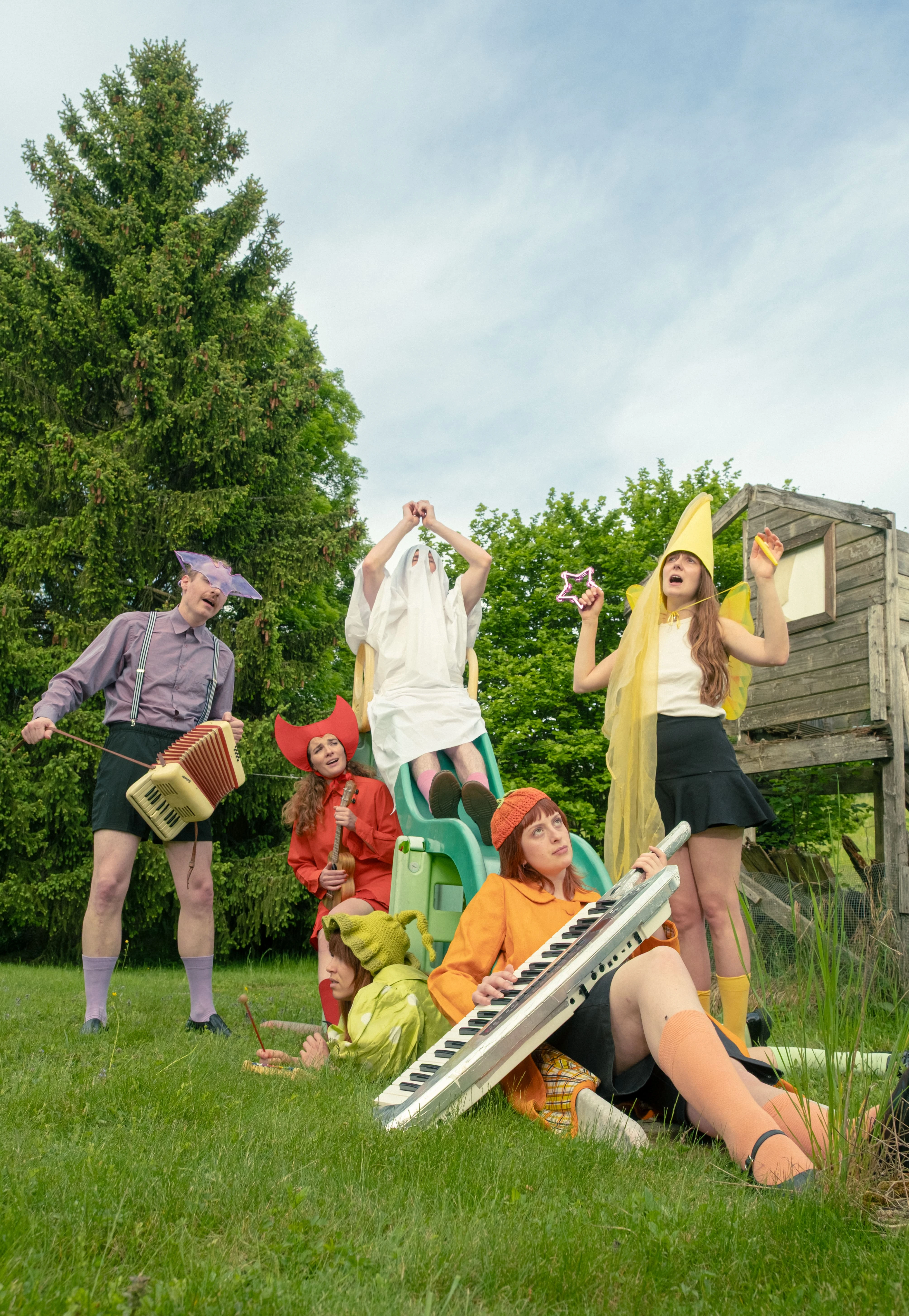 “Moi (Claude), enclin au mysticisme sauvage“ est une adaptation excentrique de « Plume d’Ange », écrit par Nougaro et composé par Jean-Claude Vannier en 1977. Ce conte percussif est adapté à un théâtre singulier, comique, exigeant parce que populaire. Le spectacle bourdonne de scènes muettes, de danse, et de musique live dans un tourbillonnement de couleur, de festivité millimétrée, qui prend au sérieux l’absurde et la tendresse, sans jamais se prendre au sérieux.