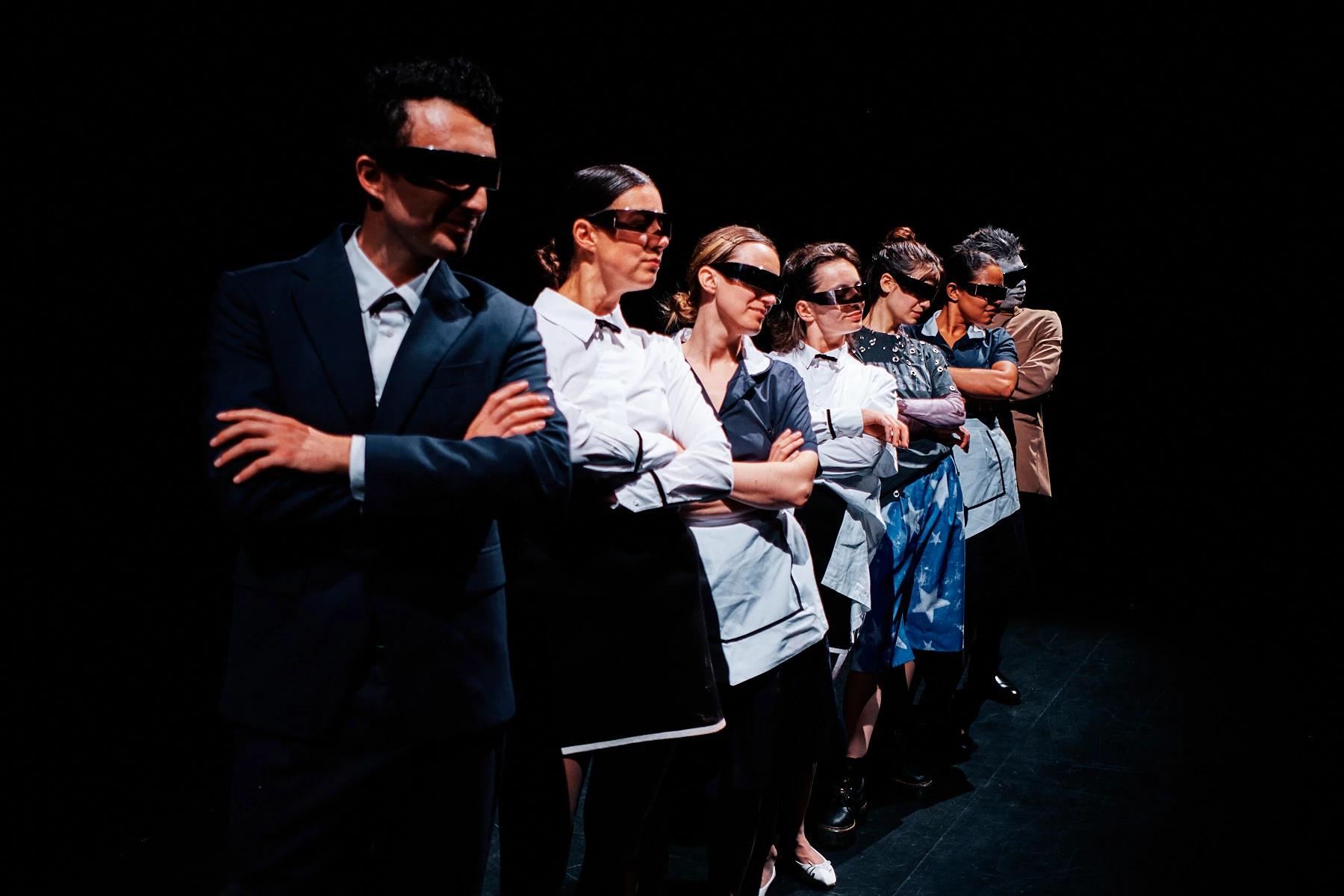 Le spectateur est invité à naviguer dans des espaces aux enjeux divers de l’hôtel 7 étoiles, qui a tout pour être le reflet d’un monde démesuré. Une chorégraphie chorale ainsi qu’une scénographie représentant une boîte miroitante amovible, incarnent la forme déambulatoire de la pièce.