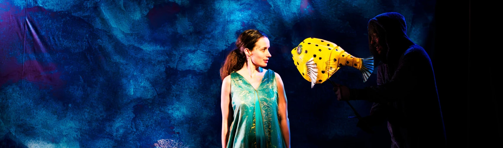 Une Petite Sirène est une adaptation libre du conte d'Hans Christian Andersen qui mêle les mots, la danse et la marionnette avec une scénographie qui nous plonge dans les différents mondes côtoyés par la Petite Sirène... L’histoire est transposée à notre époque pour parler de l’état des océans et plus spécifiquement de la thématique de la pêche intensive. On y donne notre langage aux êtres marins pour tenter de comprendre leurs problématiques. La Compagnie du Vivant aime mélanger l’imaginaire et le réel pour embarquer le spectateur dans un univers merveilleux tout en le sensibilisant à des thématiques écologiques. Une Petite Sirène est également et avant tout l’histoire d’une jeune femme qui montre à toutes les générations confondues qu’il y a toujours un chemin qui nous emmène vers nos rêves. Cette histoire rappelle l’importance de s’accepter et de s’affirmer.